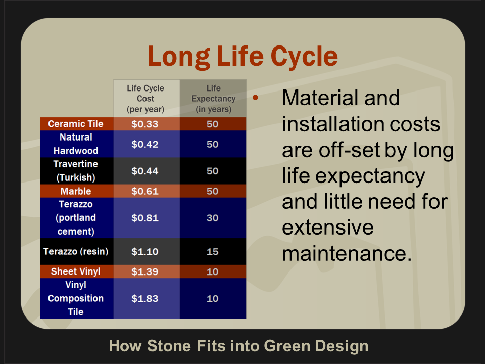 - Understand how natural stone fits into the Green Movement.