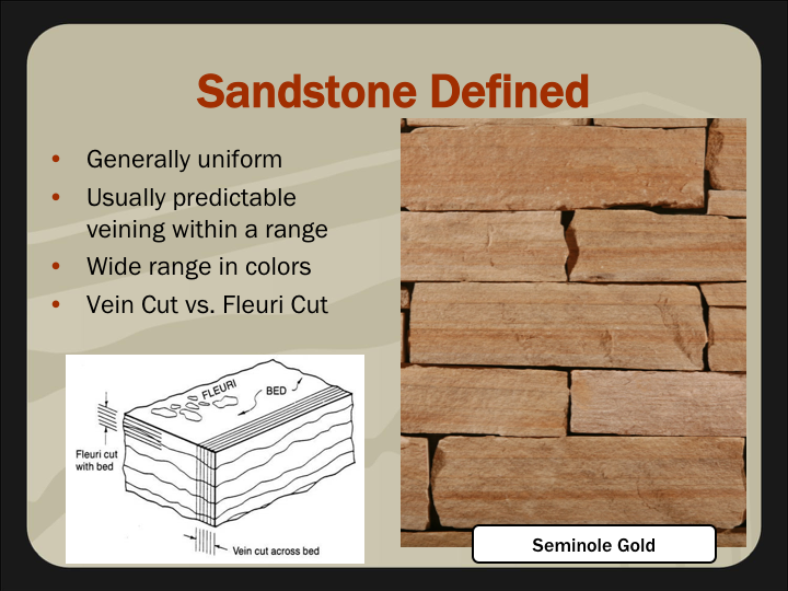 - Identify how sandstone is fabricated and installed.