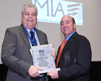 Jeff Matthews (left) accepts the 2014 Lifetime Achievement Award from MIA president Tony Malisani.
