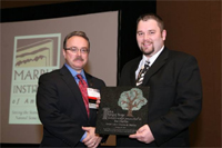 2010 MIA President, Brett Rugo of Rugo Stone in Lorton, VA, presenting the MIA Natural Stone Scholarship to Joe Durfee of Great Lakes Granite & Marble of Redford, MI.