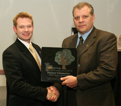 Michael Schumacher, a LEED® AP, Sales, Business Development specialist at Valders Stone & Marble, Inc. of Valders, Wisconsin, is the 2009 recipient of the MIA Natural Stone Scholarship Award. Schumacher's selection was based on a 500-word essay explaining why he desires a career in the industry. "This scholarship would allow me to contribute to the natural stone industry as a whole. I'm fortunate to work where I do, and I will be taking advantage of every chance I can to perpetuate the natural stone movement. We all carry a message...I say, "Let's Rock!" In a letter of recommendation from Bryan Frankovis, sales manager, Valders Stone & Marble said, "Mr. Schumacher's decision to apply for the MIA Natural Stone scholarship doesn't come as a surprise. He has constantly shown his initiative and willingness to learn product knowledge, applications, and awareness of the marketplace. He has the drive and energy necessary to make sure any project he is working on is complete, and done to the best of his ability." The award was presented to Schumacher at the MIA annual Awards Luncheon at StonExpo/Marmomacc Americas in Las Vegas on October 23, 2009.