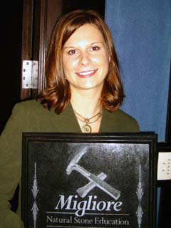 Sarah Kelly is a sales and marketing coordinator for Dakota Stone Design of Fargo, North Dakota. She was the second recipient of the Migliore Scholarship utilizing her scholarship to attend the 2005 MIA Annual Convention held in conjunction with StonExpo in Las Vegas. Her supervisor indicated that "Her enthusiasm for the natural beauty of the materials we sell is contagious. So rarely do I find a young employee who shares our interest in promoting the growth of the natural stone industry."