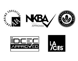 Continuing education credits are available through AIA, IDCEC, ASID, NKBA, LA CES, ASLA and GBCI.